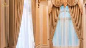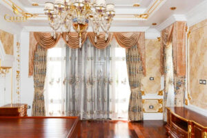 Khác với các mẫu rèm thông thường, Rèm Tân Cổ Điển được thiết kế cầu kì hơn. Chúng phù hợp với những biệt thự hay căn hộ tráng lệ, rộng lớn. Vẻ đẹp xa hoa của căn phòng càng được nâng tầm nhòe hoa văn tinh tế, thiết kế tinh xảo. Mẫu rèm này đặc biệt phù hợp làm rèm phòng ngủ.